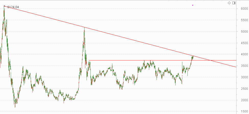 看待下周的A股大盘,正在掘金大赛中,有参赛能手以为,正在营业危殆场合缓解,A50期指、恒指期货大涨,以及上述重磅利好的刺激下,A股希望回暖。上证指数的合节压力位正在3950点左近,假使放量向上打破此点位,那么将翻开新的上涨空间。