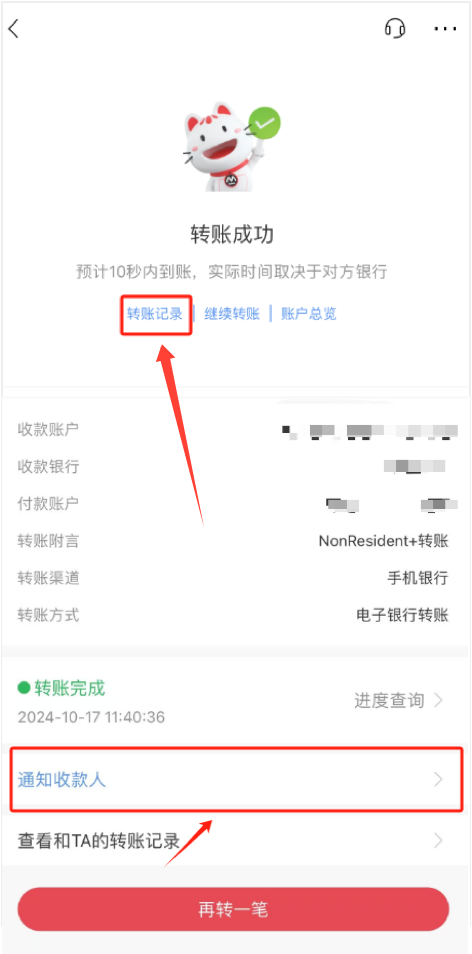 12)转账获胜后,点击“转账纪录”找到付款音讯,点击“报告收款人”取得转账电子回单/电子凭证。