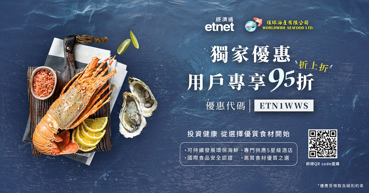 獨家優惠【etnet x 環球海產】 用戶專享全場95折,特價貨品更可折上折,立地選購五星級旅舍御用海鮮!