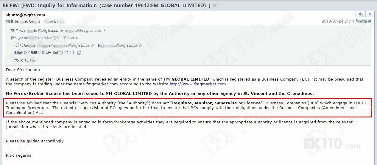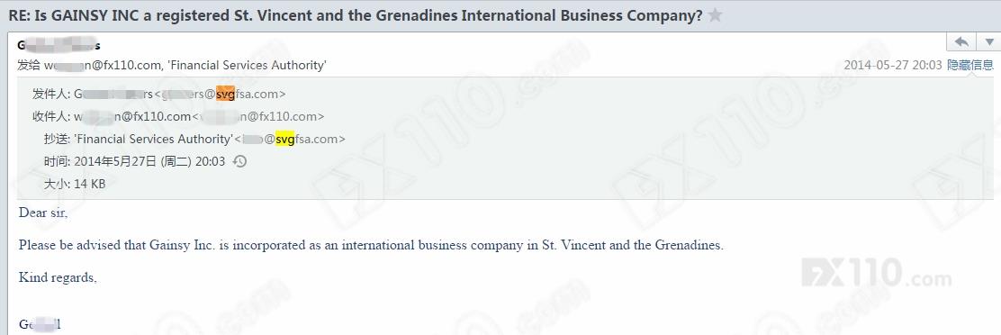 功夫回到2014年,FX110干系圣文森特和格林纳丁斯金融办事局FSA(以下简称“圣文森特FSA”),盘查某平台的金融衍生品执照天赋。三天后,收到了圣文森特FSA的回执。