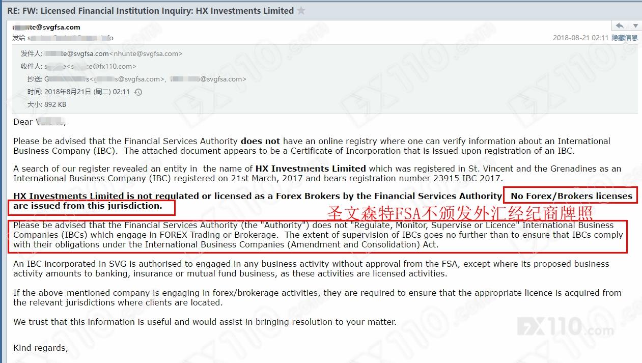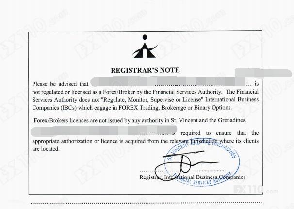 5年来,邦内不竭有公司声称有圣文森特FSA授权金融衍生品执照,但原委FX110专员与圣文森特FSA的不竭来往,浮现这类公司仅是FSA注册的邦际贸易公司(IBCs)。