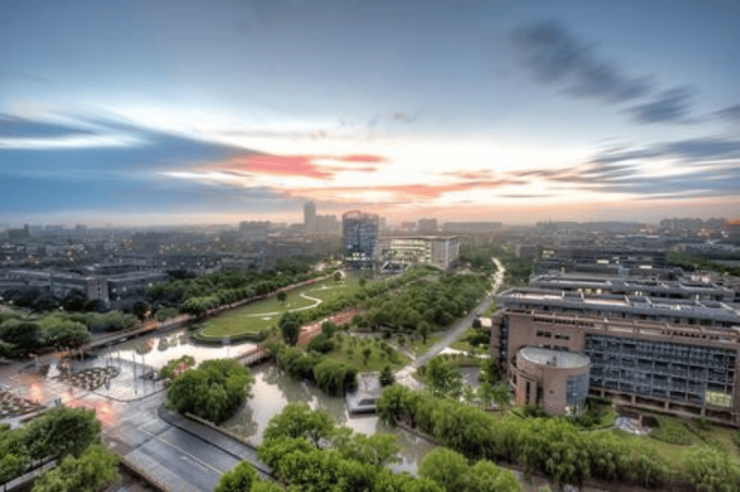 【联仲都悦汇】同样是低密度别墅区里的一员,背靠绿城玫瑰园,容积率低至1.0.项目贯穿了3条自然水系,分为ABCD四个地块,个中ABC为商住办归纳地块,自带贸易办公.