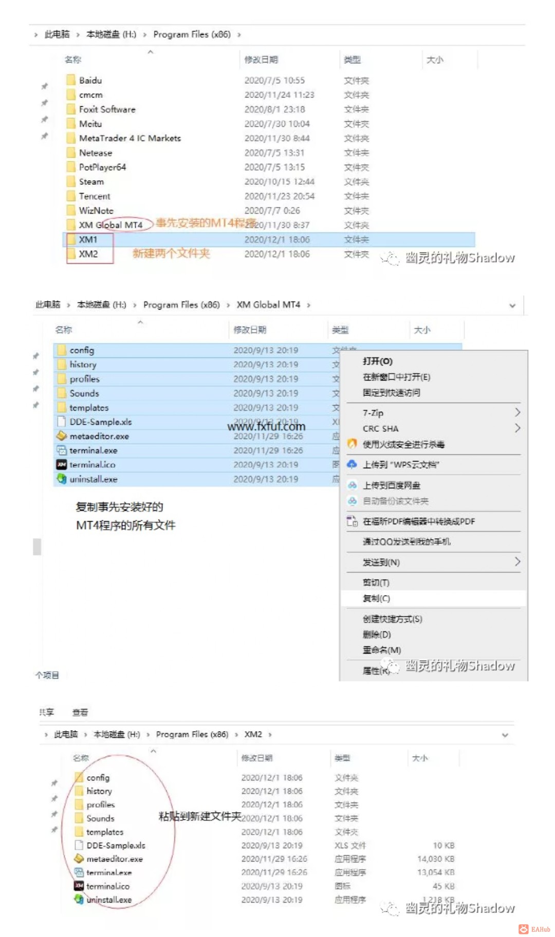 怎么正在一台电脑(或VPS)众开MT4?--下方著作出自【汇有钱途】网站MT4众开,本来很粗略。便是正在仍然安置了一个平台的MT4步伐后,正在安置旅途找到MT4的安置文献夹,复造扫数的文献到众个差异的文献夹酿成副本即可。众开时,要进入每个副本地址文献夹内,找到MT4的terminal.exe实施文献,双击翻开。也可能要是你嫌进入文献夹找terminal.exe障碍的话就可能正在terminal.exe上点右键,挨个进入选发送到-桌面飞速形式,云云就可能正在桌面上直接双击翻开了。比方我的XM平台的MT4安置正在H盘,为了同时翻开3个MT4步伐,新修两个文献夹,定名为XM1和XM2。把原先安置好的MT4扫数文献复造到这个两个文献夹。