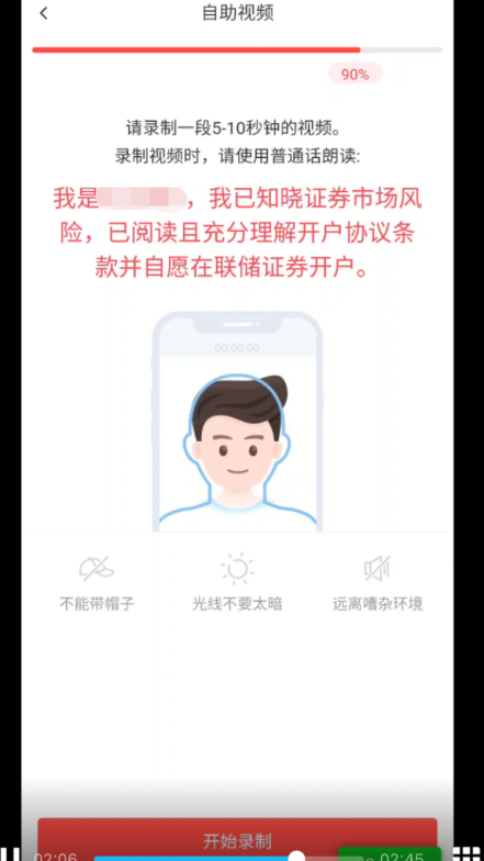 单向视频正在开户前端界面显示视频录制经过中需求朗读的话术文字,客户遵照提示文字自行朗读,并实行开头息争散录制。视频录制实行后, 用户可回放查看录制的视频实质, 确认无误可举行提交,并进入下一节点, 若预览出现视频有题目, 用户可从头创议智能单向视频录制。