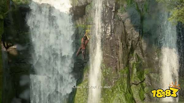 连接向前研究,穿过树根后往对面跳,然而脚色没抓稳滑了下去,即将跌落时用绳索钩住上面的树枝,然后往回摆荡。