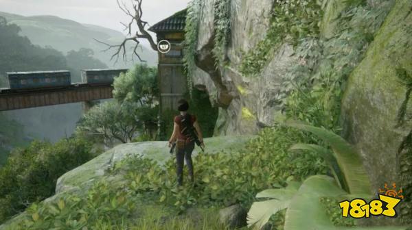 连接向前研究,用绳索摆荡过来后,滑下几个滑坡,然后先不要去找山姆,左拐从边沿爬过去,正在平台边沿处捡到宝藏。