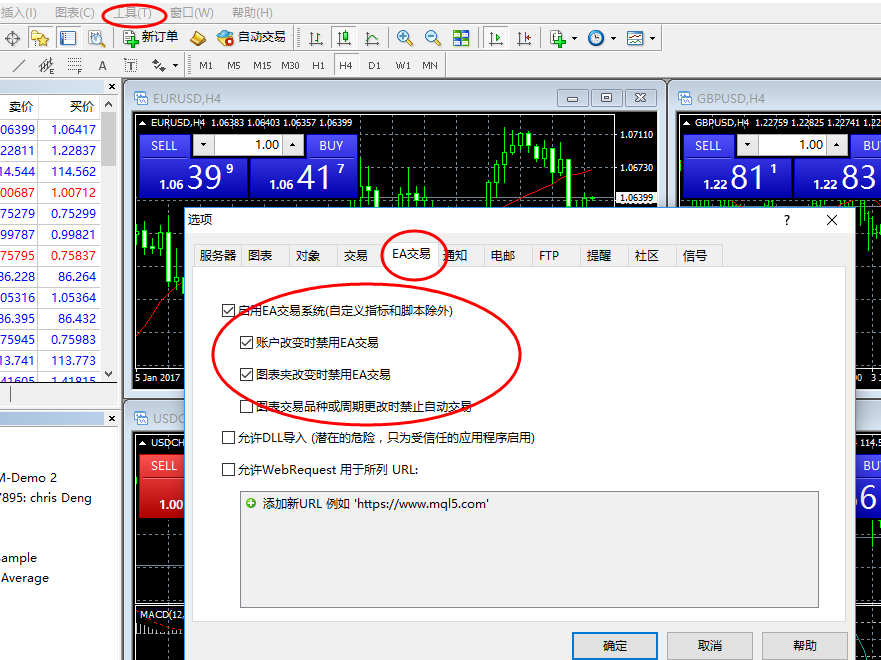 必要指出的是,正在主动往还方面,MT4再有一个总开合,即是“器材”- “选项”中的“EA往还”。