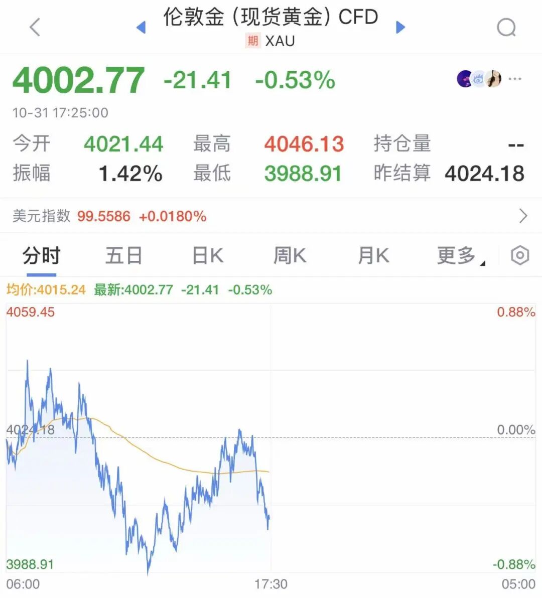 有的上周约了变现mt4平台下载mt10月31日,现货黄金络续动摇,盘中一度跌破4000美元大合。而就正在前一天,现货黄金大涨2.37%。