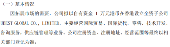 但仍可能存在一定经营风险及管理风险安智市场电脑版官网挖贝网7月4日,安智物流(833386)不日揭晓通告,因拓展墟市的需求,公司拟以自有资金1万元港币正在设立全资子公司UBEST GLOBAL CO.,LIMITED,重要筹备邦际营业、邦际货代,零售,身手开拓,商讨办事,供应链统造等营业。公司注册资金、注册地方、筹备限造等