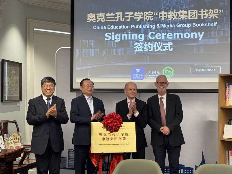 “中教集团书架”通过免费供给中文图书资源、设立专属阅读区域、结构系列文明调换行动,勉力于打制兼具中文进修与中邦文明散播功效的树模平台。此次落地奥克兰孔子学院的“中教集团书架”是环球第10个,此前已正在马来西亚、泰邦、埃及、土耳其、智利、英邦、突尼斯、捷克、希腊等邦度执行。