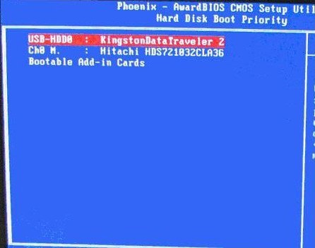 如上图,正在高级BIOS设立(Advanced BIOS Features)界面里,开始点击(硬盘启动优先级)Hard Disk Boot Priority,之后即可进入BIOS开机启动项优先级选取,咱们能够通过键盘上的上下键选取USB-HDD(U盘即可,会自愿识别咱们插入电脑中的U盘),如下图: