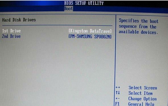 上图硬盘驱动器“Hard Disk Drives”选取:选取U盘为第一启动摆设“1st Drive”。假如先正在“Hard Disk Drives”内里选取U盘为第一启动摆设,如图3-2所示,那么这里就会显示有U盘,那就选取U盘为第一启动摆设,如图下图所示。