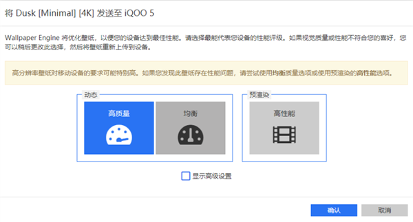 结束了这一步操作,差友们就会进入到一个采用壁纸质料的选项。须要额外留神,【高质料】和【平衡】两个选项正在手机上同步会相当疾。