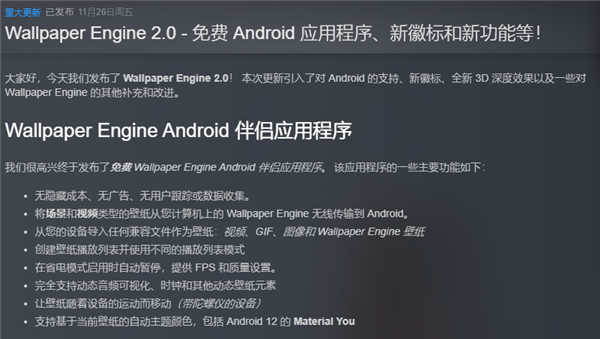 而且跟着Wallpaper Engine:壁纸引擎Android 端的绽放,会有越来越众的作家插手到为手机定制壁纸的队伍中。