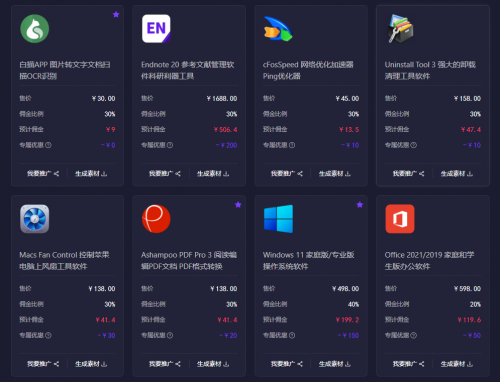 海量正版软件,官方授权资源,一键天生专属链接和海报。高比率佣金等您来拿!