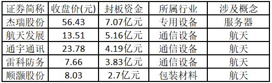 涨停板方面,眼前盘面涨停热门仍映现迅速轮动的态势,今日涨停股数目最众的板块是航天板块,而从主力资金净流入金额以及封板资金看,也有众只航天板块个股上榜。