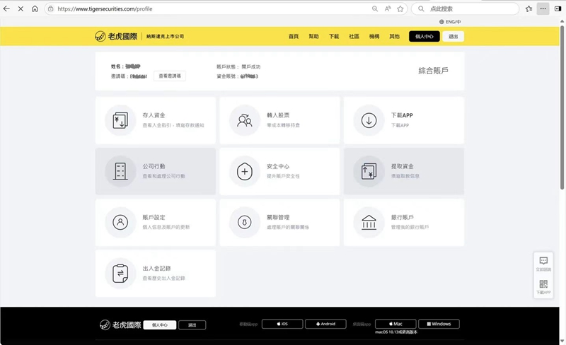 3个劳动日后,记者再次收到了老虎证券“开户凯旋”的邮件告诉。登录老虎证券账户编制后,编制显示账户形态为“开户凯旋”,资金账号为“6*****6”。账户的整体功效模块搜罗存入资金、转入股票、下载App和提取资金等。